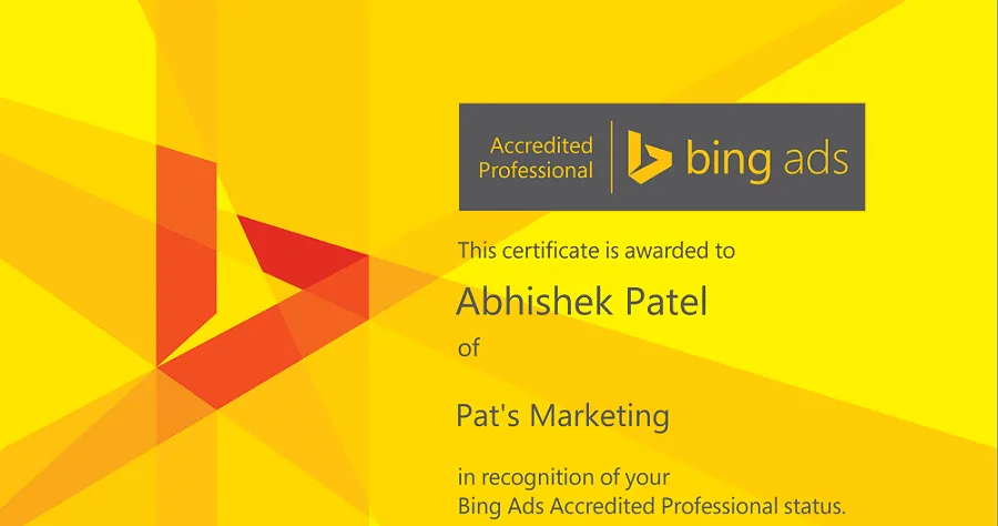 Earning Bing Ads Accredited Professional Program is not easy and currently there are very few partners of the program. To bag the accreditation, a company needs to complete 30 training modules and thereafter clear an exam with min. 80% score required to get through. The training module is quite extensive and covers topics relating to Bing Ads and search marketing. On completion of the training, a Bing Ads partner is fully adept in writing effective ads, selecting right key words, bidding and traffic estimation, conversion tracking, budgeting, and efficiently handling all aspects of a successful campaign. Upon qualifying the exam, Pat’s Marketing is now listed in Bing’s Accredited Professional Membership Directory.